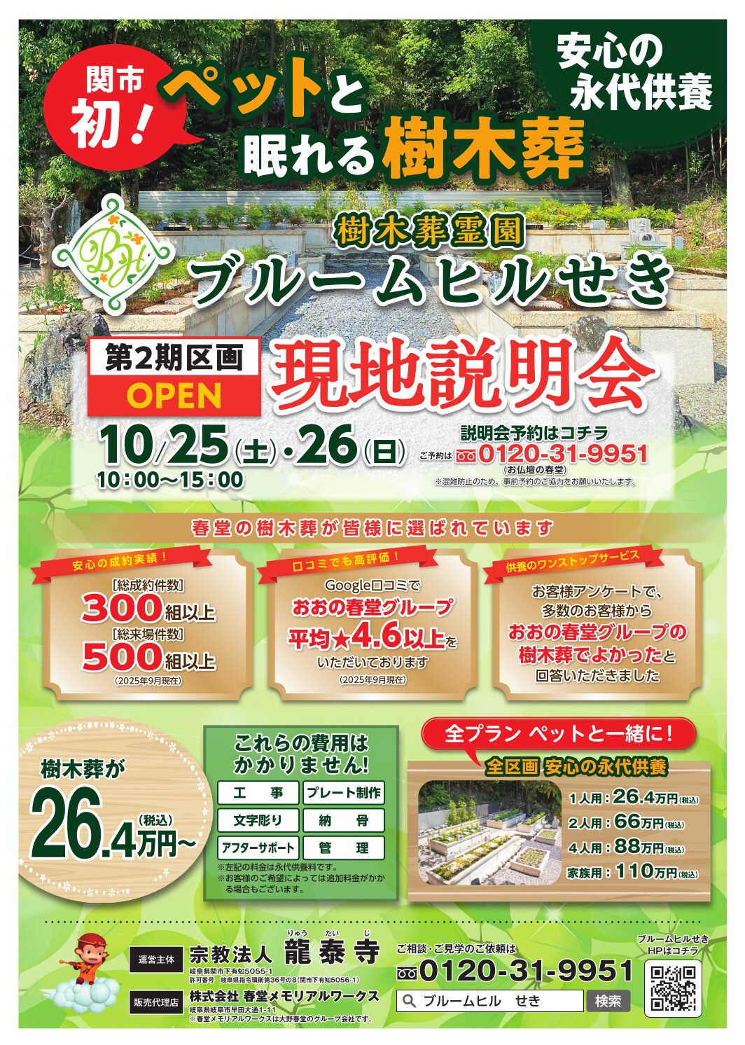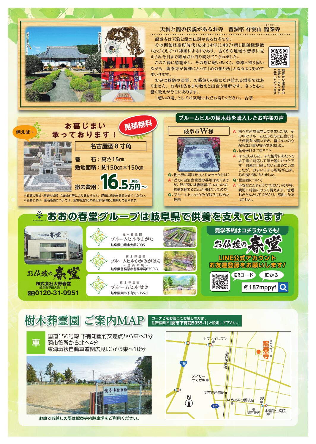 ■ 場所 樹木葬霊園ブルームヒルせき (関市下有知5055-1 龍泰寺 敷地内)